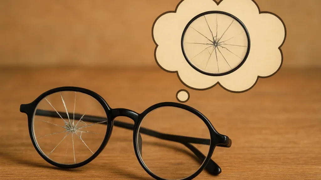 Óculos no sonho simbolizam visão, percepção e a maneira como filtramos informações. Quando eles quebram, isso aponta para uma falha nessa filtragem.